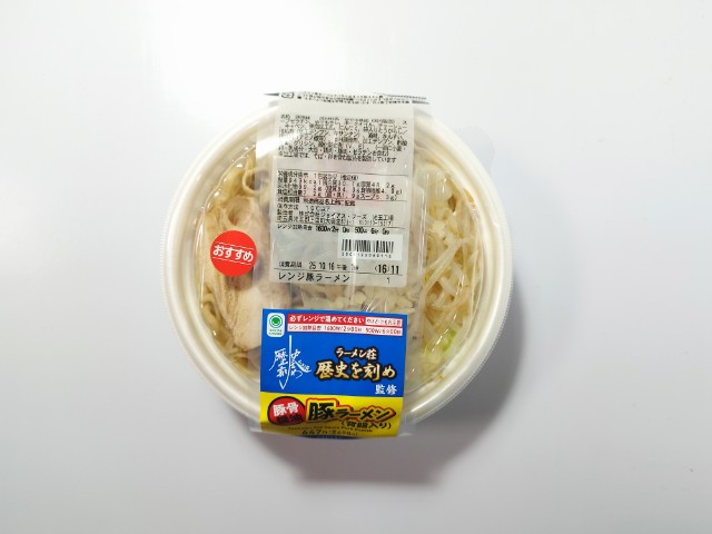 ファミリーマートの今週の新商品「ラーメン荘 歴史を刻め監修 豚骨醤油 豚ラーメン」を食べてみました。