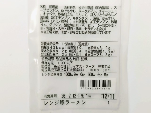 以前の購入した商品は2025年10月14日発売で商品名がラーメン荘 歴史を刻め監修 豚骨醤油 豚ラーメンでした↓