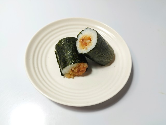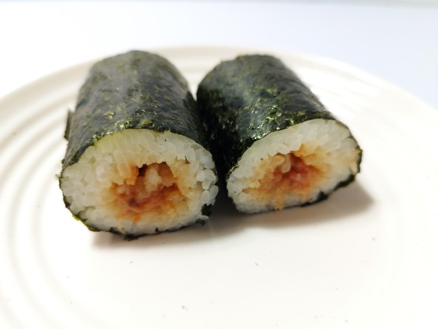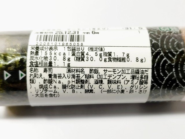 サーモンを使った手巻寿司です。以前の購入が2025年8月12日発売だったので、約4ヶ月以上経っていますが、価格が230円(税込248円)から258円(税込278円)へと変わっています。そんな手巻寿司ですが、サーモンはサーモンの旨味と醤油の味わいがあって、間違いのない美味しさになっています。海苔はパリッとした食感と海苔の風味があって、こちらも味わい深い一品になっていると思います。大きさは普通の手巻寿司サイズで、小腹が空いた時や主食にあと一品追加したい時にピッタリです。ぜひサーモンの手巻寿司を食べてみてください。