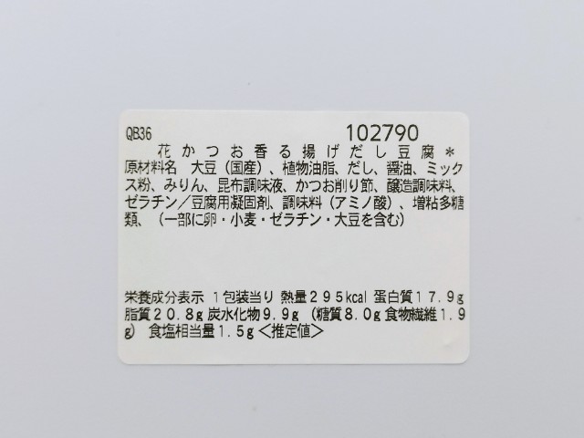 花かつおがのった揚げだし豆腐です。以前の購入が2025年1月21日発売だったので、約10ヶ月近く経っていますが、価格が388円(税込419.04円)から328円(税込354.24円)に商品名が揚げだし豆腐から花かつお香る揚げだし豆腐へと変わっています。そんな揚げだし豆腐ですが、衣のジューシーな味わいと豆腐のふんわりとした食感で、自然と箸が進みます。特にだしの旨味と塩味のバランスが良いので、最後のひと口まで美味しく食べられます。ポイントはトッピングの花かつおで、揚げ出し豆腐の美味しさをさらに引き立てています。内容量は一人分にちょうどよく、おつまみやご飯のおかずにあと一品追加したい時にピッタリです。ぜひ花かつお香る揚げだし豆腐を食べてみて下さい。