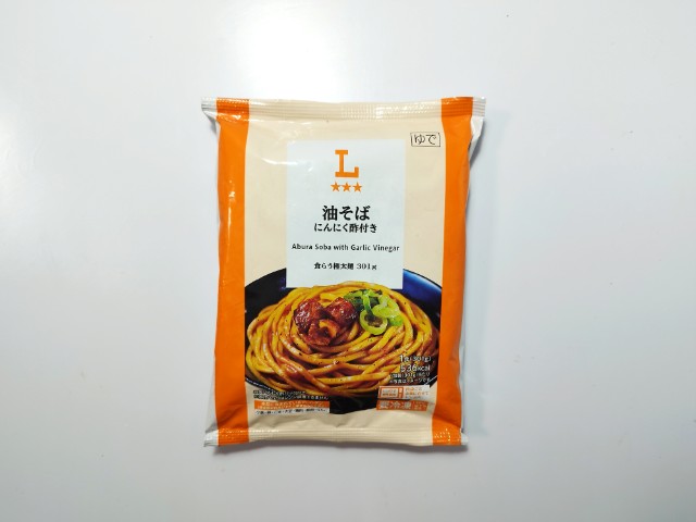 ローソンの商品「油そば にんにく酢付き」を食べてみました。