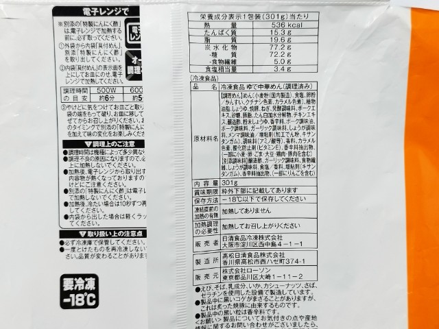 栄養成分【1食(301g)当たり】