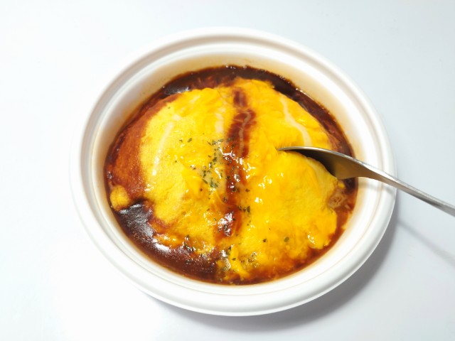 ファミリーマートの商品「デミソースと食べるとろとろたまごのオムライス」を食べてみました。