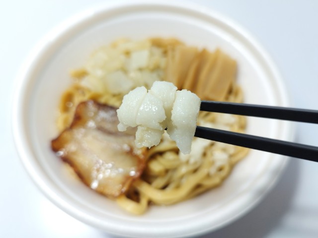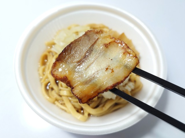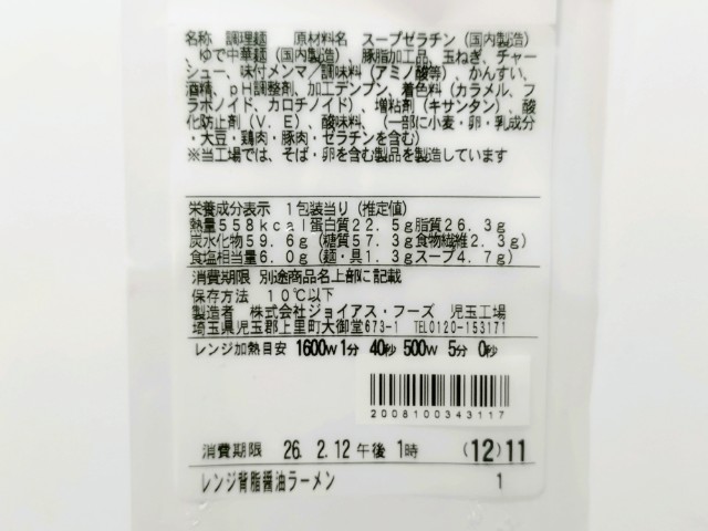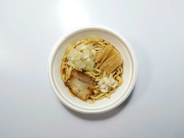 新潟燕三条系の背脂醤油ラーメンです。以前の購入が2025年2月4日発売だったので、約1年近く経っていますが、価格は変わっていません。そんな背脂醤油ラーメンですが、スープは煮干しの旨味と醤油の風味があって、濃厚な味わいながらもスッキリとした後味になっています。平打ちの太麺はほどよい弾力とのどごしの良さで、醤油スープともよく合います。具材には背脂やチャーシュー、玉ねぎ、メンマがのっていて、背脂のコクや玉ねぎの食感など、それぞれの味と食感を楽しむ事が出来ます。内容量は1食分にちょうどよく、お腹も満たされます。ぜひ背脂醤油ラーメンを食べてみてください。