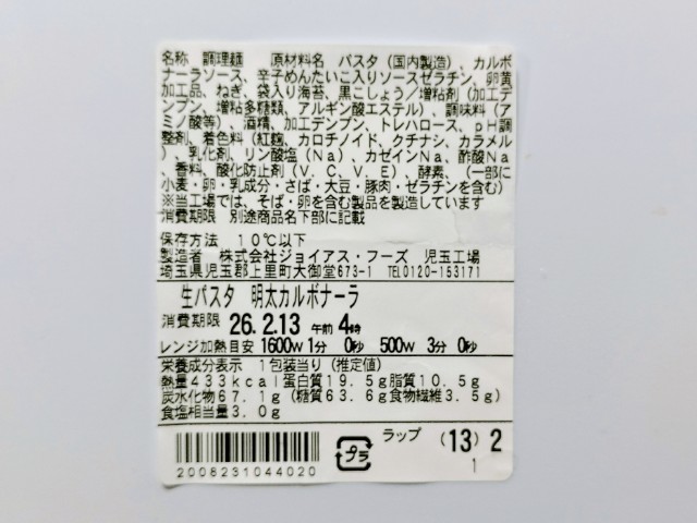 以前の購入した商品は2025年2月11日発売で商品名が【鎌倉パスタ監修】明太カルボナーラでした↓