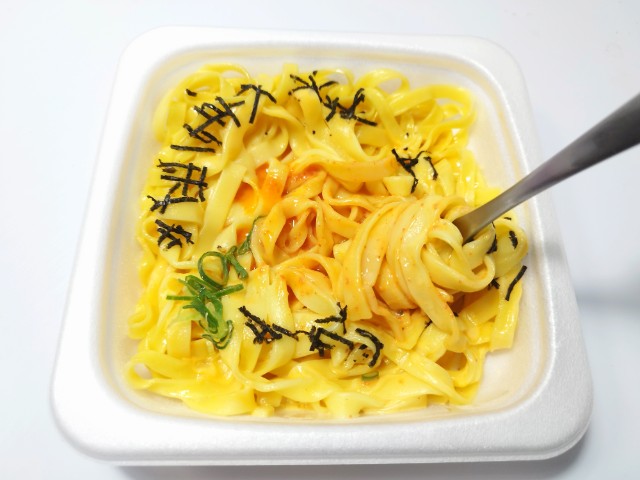 ファミリーマートの今週の新商品「鎌倉パスタ監修 生パスタ明太カルボナーラ」を食べてみました。