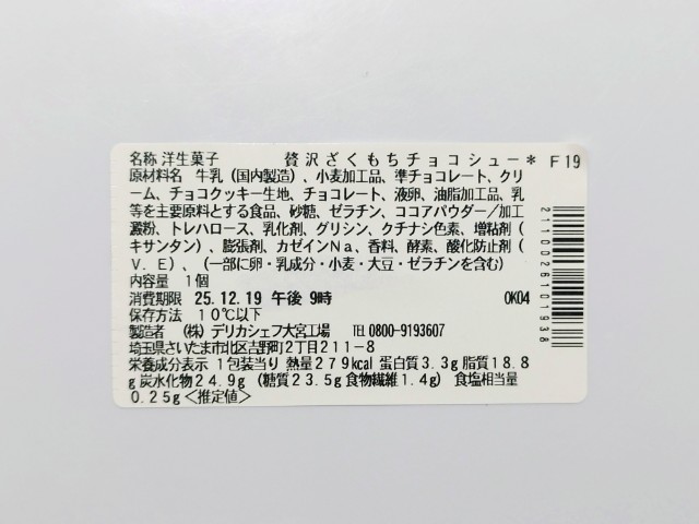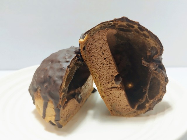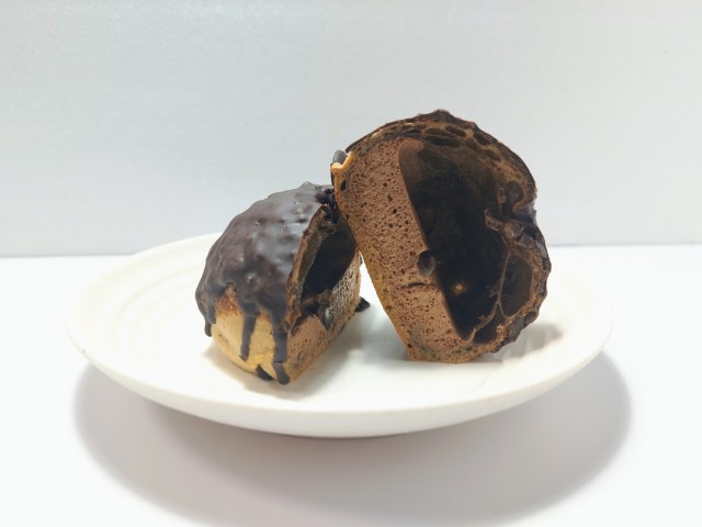 チョコクリームが入ったシュークリームです。以前の購入が2025年2月11日発売だったので、約10ヶ月近く経っていますが、価格は変わっていません。そんな贅沢ざくもちチョコシューですが、外側はザクザクとした食感とチョコの甘味のチョココーティング、中のシュー生地はもちもちとした食感と香ばしさと味や食感の違いがあって、クセになる美味しさです。チョコクリームはなめらかな食感とミルクチョコの味わいで、シュー生地とのバランスも良いです。味だけでなく食感も楽しめるシュークリームといった感じで、最後のひと口まで美味しく食べられます。大きさは普通のシュークリームサイズで、おやつや食後のデザートにピッタリです。ぜひ贅沢ざくもちチョコシューを食べてみて下さい。