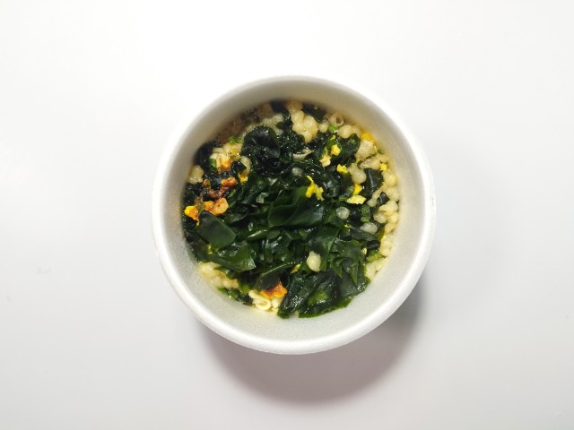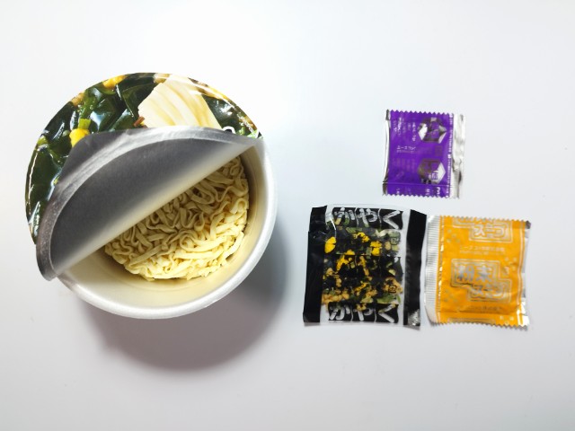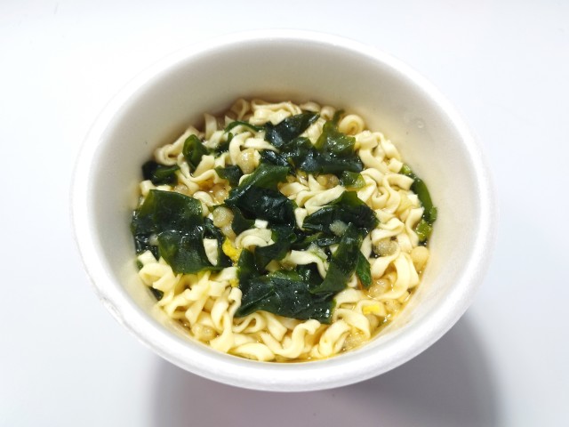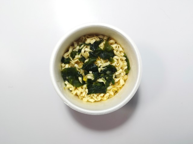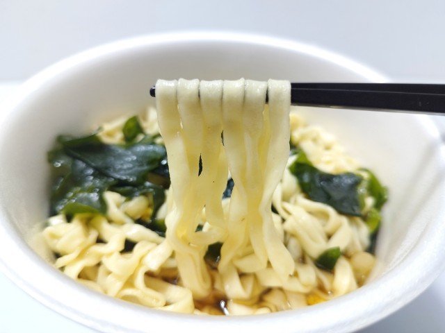 わかめうどんのカップ麺です。以前の購入が2025年2月18日発売なので約9ヶ月近く経っていますが、価格が198円(税込213円)から221円(税込238円)に商品名が北海道産昆布だし使用わかめうどん 大盛から北海道産昆布だし使用わかめうどんへと変わっています。今回の商品名には大盛の言葉が抜けていますが、容器の形や内容量から見ても前回より今回の方が明らかに大盛になっています。そんなカップ麺ですが、つゆはだしの旨味と醤油の風味、玉ねぎの甘味があって、飲み干してしまいたくなる美味しさです。うどんはもちもちとした食感と歯切れの良さがあって、つゆとのバランスも良いです。具材にはわかめを始め、揚げ玉やたまご、ねぎが入っていて、味や食感のアクセントになっています。またわかめが入っている事で、つゆの旨味がさらに増しているのも大きなポイントだと思います。内容量は大盛だけあって、1食分にちょうどよく、お腹も満たされます。ぜひわかめうどんを食べてみて下さい。