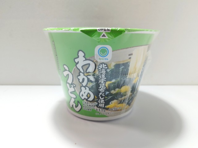 ファミリーマートの今週の新商品「北海道産昆布だし使用わかめうどん」を食べてみました。