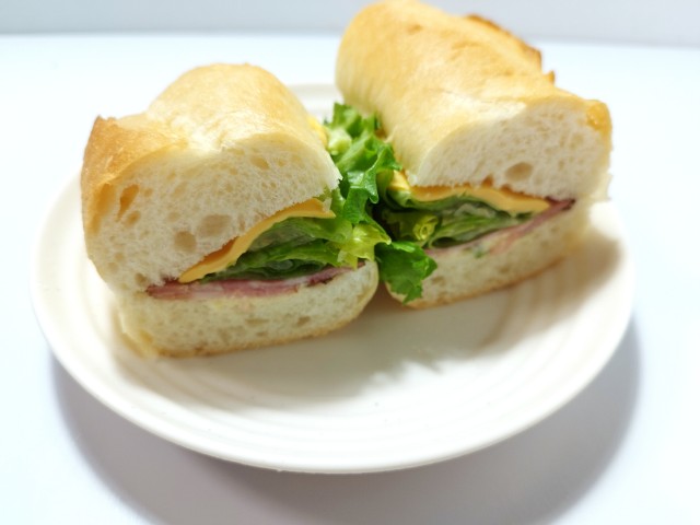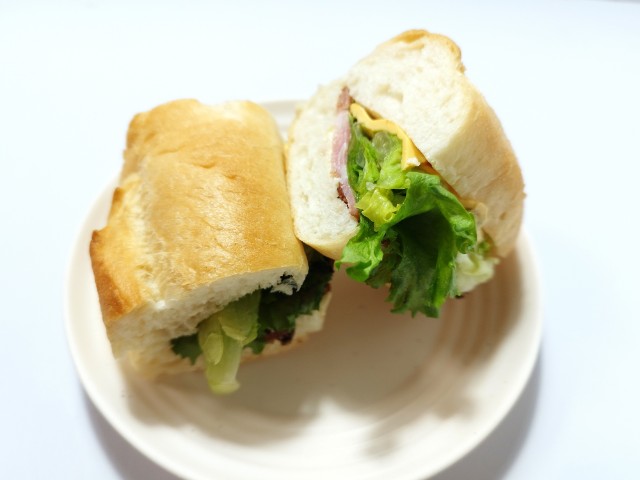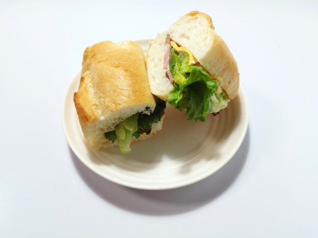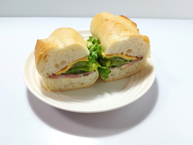 ペッパーポークとチェダーチーズを使ったバゲットサンドです。以前の購入が2025年2月12日発売だったので、約7ヶ月近く経っていますが、価格が360円(税込388.80円)から378円(税込408.24円)へと変わっています。そんなバゲットサンドですが、パン生地はしっかりとしながらも、もっちりとした食感もあって食べ応えがあります。具材のペッパーポークはしっとりとした食感とほどよい塩味、黒胡椒のピリッとした辛味があって、間違いのない美味しさです。チェダーチーズはチーズの風味となめらかな食感で、味のアクセントになっています。味付けにはマスタードマヨネーズが使われていて、マヨネーズの酸味とマスタードの風味が、ペッパーポークの美味しさを引き立てています。大きさはお腹を軽く満たすにはちょうどよく、朝食や主食にあと一品追加したい時にピッタリです。ぜひペッパーポーク&チェダーを食べてみて下さい。