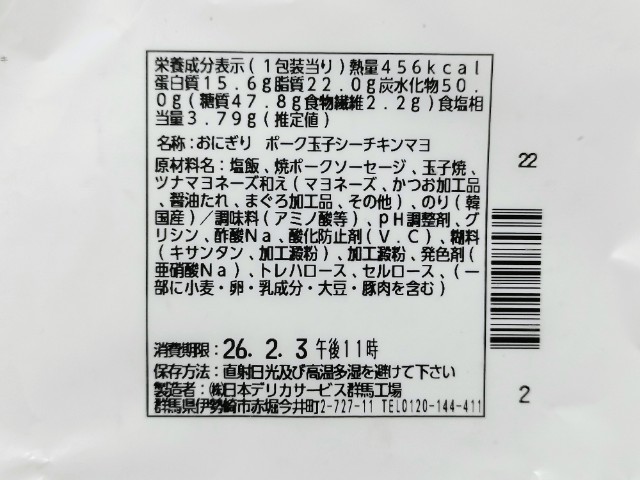 盛りすぎ!具!おにぎりです。以前の購入が2025年6月24日発売だったので、約7ヶ月以上経っていますが、価格は変わっていません。ローソンでは1月27日より「盛りすぎチャレンジ」を開催していて、今回の商品も対象商品の一つになっています。ちなみに内容としてはポークランチョンがお値段そのまま50%以上増量(従来品との比較)の1枚から2枚になっているらしいです。そんな具!おにぎりですが、見ての通りのサンドタイプのおにぎりで、具材もしっかりと分厚くて大きいです。ポークランチョンは今回増量につき2枚になっていて、豚の旨味としっかりとした塩味で、食べ応えがあります。玉子焼はふんわりとした食感とたまごの甘味で、ポークランチョンとの相性抜群です。この商品の一番のポイントはシーチキンマヨネーズで、シーチキンの旨味とマヨネーズのなめらかな味わいが具材の美味しさをさらに引き立たせています。普通のおにぎりに比べて、大きさがあるので、このおにぎり1個でお腹も軽く満たされると思います。ぜひ盛りすぎ!具!おにぎりを食べてみてください。