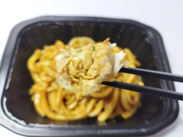 セブンイレブンの今週の新商品「7P 大盛汁なしカレーうどん」を食べてみました。