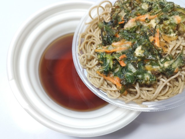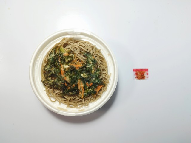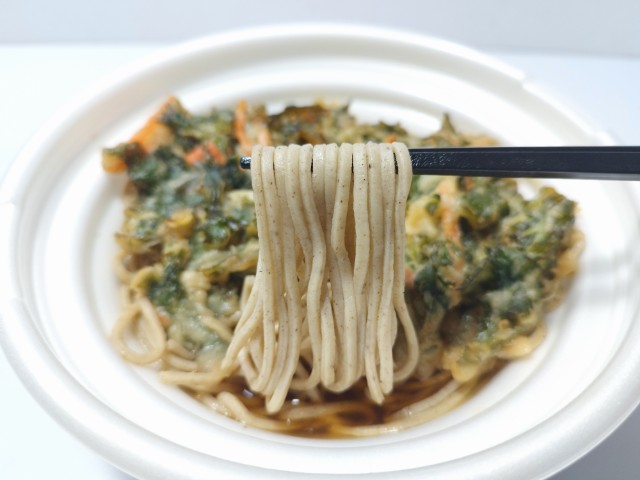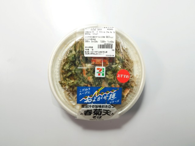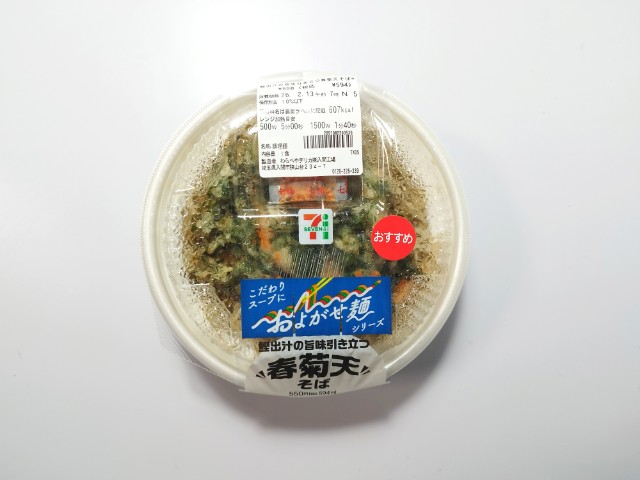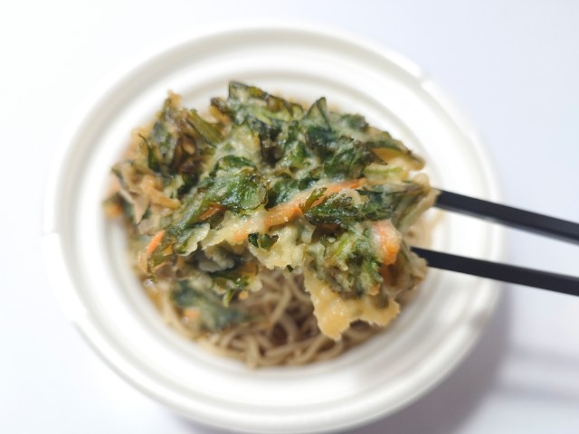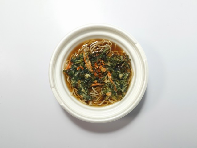 セブンイレブンの今週の新商品「鰹出汁の旨味引き立つ春菊天そば」を食べてみました。