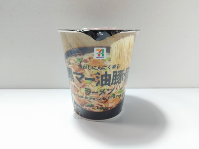 セブンイレブンの今週の新商品「7プレミアム 黒マー油豚骨ラーメン」を食べてみました。