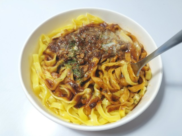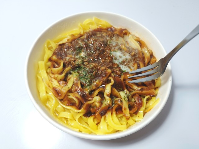 チーズソースを合わせたボロネーゼです。以前の購入が2025年10月7日発売なので約5ヶ月近く経っていますが、価格は変わっていません。そんなボロネーゼですが、ボロネーゼソースは牛の旨味とデミグラスソースの濃厚な味わいがあって、間違いのない美味しさです。ポイントはチーズソースで、ボロネーゼソースと合わさる事で、チーズの風味となめらかな食感が加わって、一気に美味しさが増します。パスタは生パスタのフェットチーネで、もちもちとした食感と小麦の風味で、食べ応えがあります。個人的にはフェットチーネはクリーム系のパスタに合わせるイメージが強いので、ボロネーゼではちょっとどうなのかと気になっていました。実際に食べてみるとチーズソースが加わってなめらかな味わいのボロネーゼには、不思議なくらいによく合っています。内容量は1食分にちょうどよく、お腹も満たされます。ぜひボロネーゼを食べてみてください。
