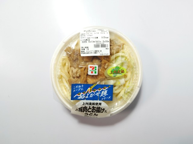 セブンイレブンの商品「豚肉とお揚げのうどん 上州麦豚使用」を食べてみました。