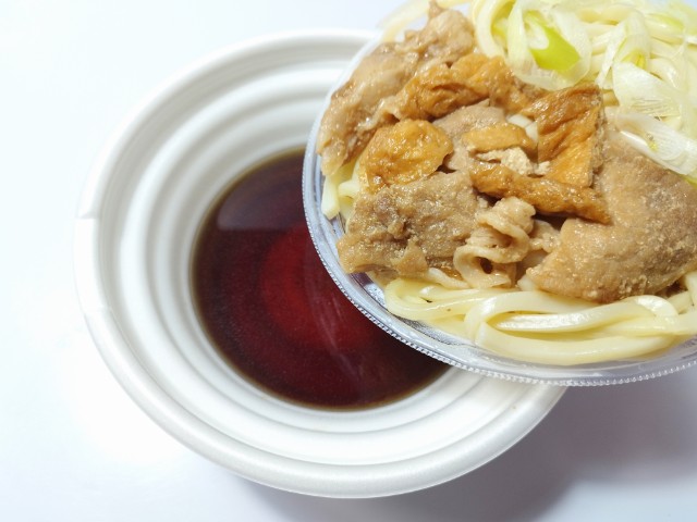 セパレートタイプなので、うどんと具材をつゆに入れます。