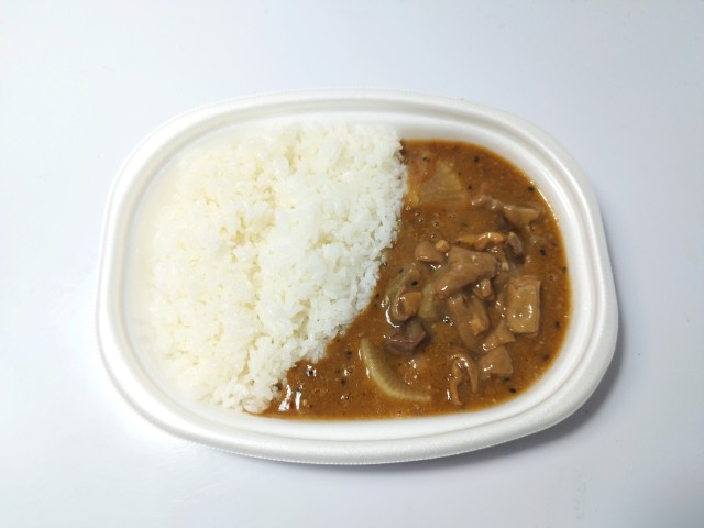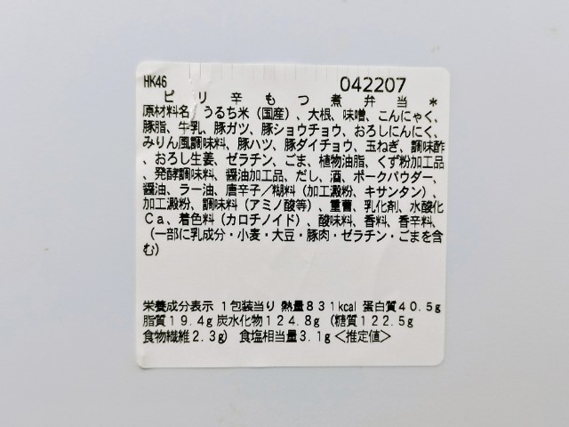 もつ煮のお弁当です。以前の購入が2025年11月4日発売だったので、約4ヶ月以上経っていますが、価格が598円(税込645.84円)から698円(税込753.84円)に変わっています。そんなもつ煮弁当ですが、温めることでとろとろの状態になったもつ煮は、味噌の風味と野菜の旨味、にんにくの香りがあって、食べ出すと止まらなくなる美味しさです。特にもつはゴロッとした大きさながらもプルンとして柔らかく、臭みがないので、ご飯がどんどん進みます。一緒に入っているこんにゃくはほどよい弾力で食感のアクセントに、大根は味が染みていて、とろけるような食感を楽しめます。ポイントはピリッとした唐辛子の辛味で、もつ煮の美味しさをさらに引き立てています。内容量は1食分にちょうどよく、お腹も満たされます。ぜひピリ辛もつ煮弁当を食べてみてください。