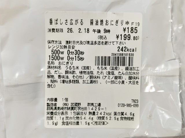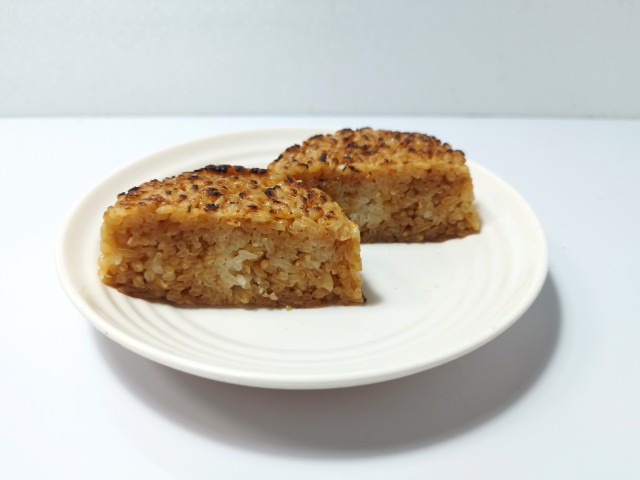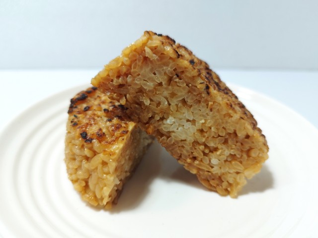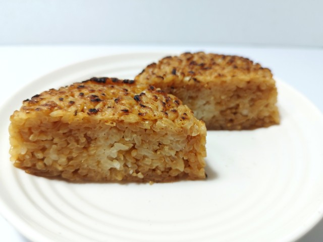 醤油の焼おにぎりです。以前の購入が2025年9月2日発売だったので、約5ヶ月以上経っていますが、価格が148円(税込159.84円)から185円(税込199.80円)に変わっています。今回は同様の商品で醤油の香り引き立つ 香ばし焼おにぎり(2025年2月10日発売)がありますが、そちらは三角のおにぎりで地域によって形に違いがあるようです。そんな焼おにぎりですが、ご飯は醤油の旨味とだしの風味、香ばしい味わいがあって、ハマってしまう美味しさです。また焼くと水分が抜けて、ご飯が硬くなりがちですが、そういった事もなく、ふっくら食感でどんどんと食べ進められます。シンプルですが、色々とこだわって作られている焼おにぎりといった感じで、最後のひと口まで美味しく食べられます。大きさは普通のおむすびサイズで、小腹が空いた時や主食のあと一品追加したい時にピッタリです。ぜひ香ばし醤油焼おにぎり食べてみてください。