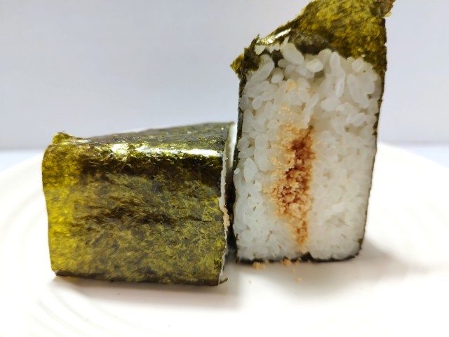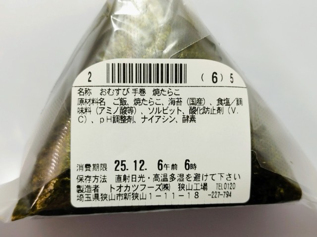 焼たらこを使った手巻おむすびです。以前の購入が2025年2月4日発売だったので、約10ヶ月近く経っていますが、価格が184円(税込198円)から202円(税込218円)へと変わっています。そんなおむすびですが、焼たらこはたらこの旨味とほどよい塩味があって、間違いのない美味しさです。ご飯はふっくら食感で、パリッとした海苔ともよく合います。大きさは普通のおむすびサイズで、小腹が空いた時や主食にあと一品追加したい時にピッタリです。ぜひ焼たらこの手巻おむすびを食べてみて下さい。
