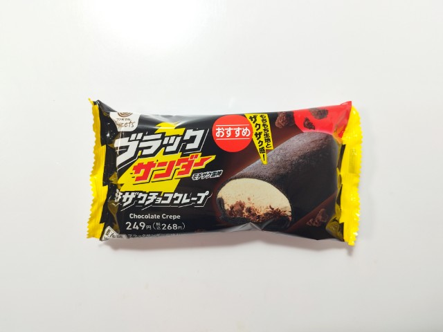 ファミリーマートの今週の新商品「【「ブラックサンダー」コラボフェア】ブラックサンダー モチザクチョコクレープ」を食べてみました。