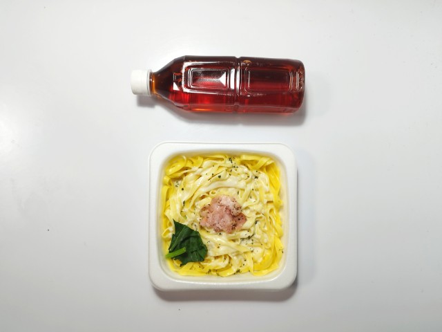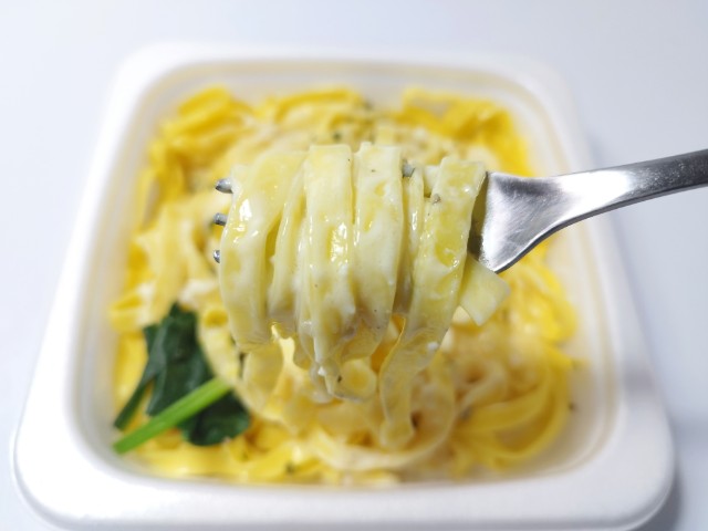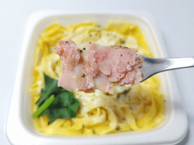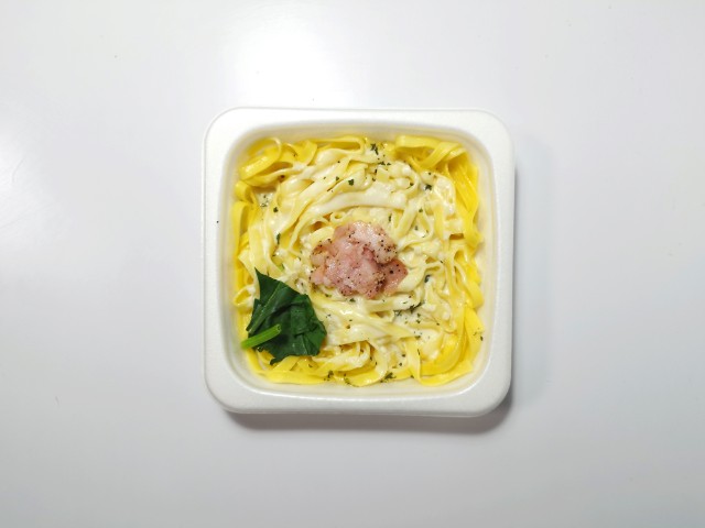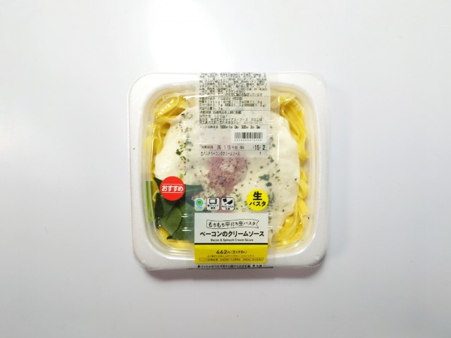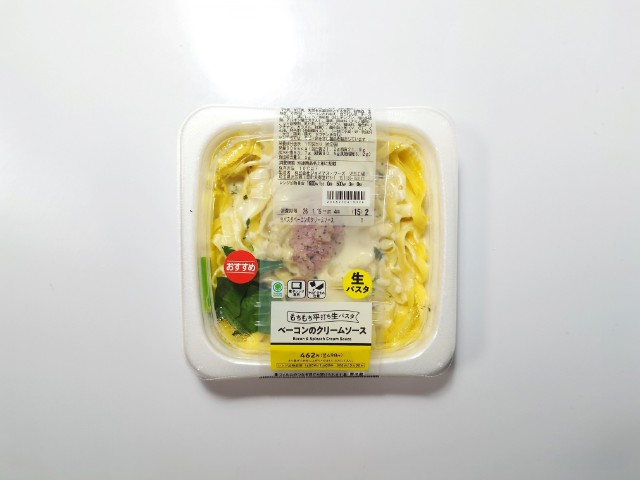 ファミリーマートの今週の新商品「生パスタ ベーコンのクリームソース」を食べてみました。