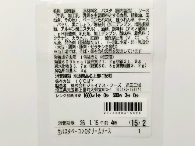以前に購入した商品は2023年9月5日発売で商品名が生パスタ ベーコンとほうれん草でした↓