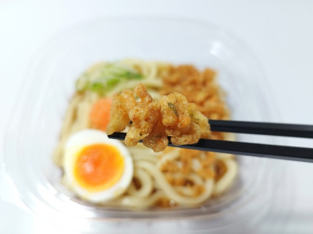 セブンイレブンの今週の新商品「自家製揚げ玉の冷したぬきうどん」を食べてみました。