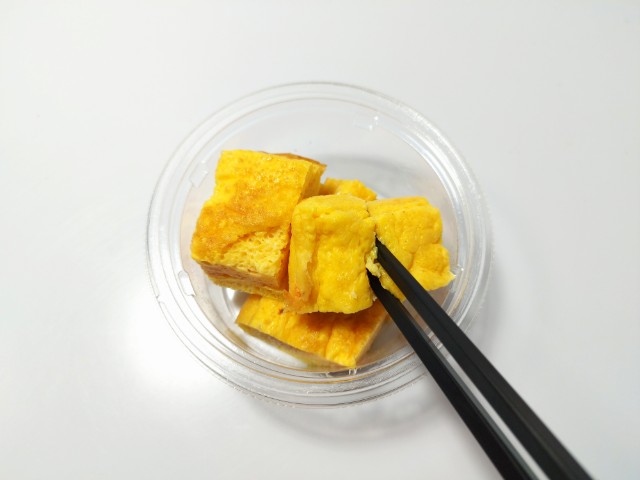 かねふくの明太子が入った玉子焼きです。以前の購入が2025年4月3日発売だったので、約8ヶ月近く経っていますが、価格は変わっていません。そんなかねふく明太子入り玉子焼きですが、玉子焼き玉子の甘味明太子の旨味だしの風味があって、間違いのない美味しさです。やはり中の明太子がポイントで、味だけでなく、食感のアクセントにもなっています。カップデリなので内容量は多くはありませんが、おつまみおかずをもう一品追加したい時にピッタリの商品です。ぜひかねふく明太子入り玉子焼きを食べてみて下さい。