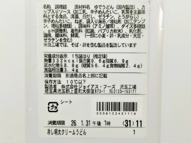 ファミリーマートの商品「【関東・東海・関西】冷し明太クリームうどん」を食べてみました。