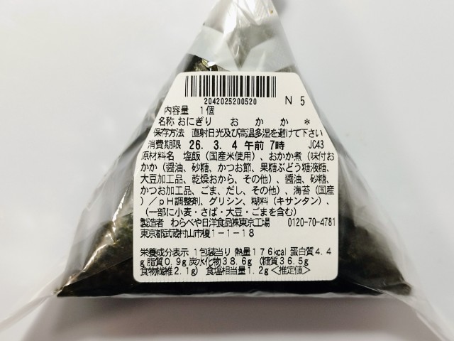 以前に購入した商品は2025年4月15日発売で味付海苔おにぎりおかかでした↓