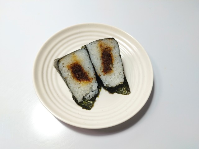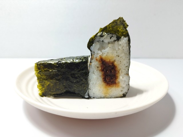 出汁と醤油で甘辛く炊き上げたおかか煮を中具にした、パリッとした海苔を巻いて食べるおにぎりです。