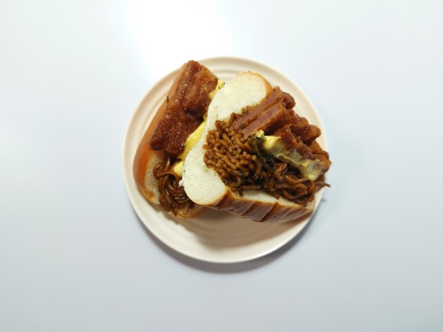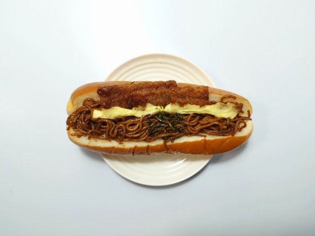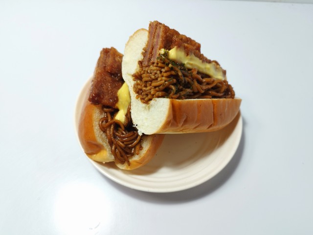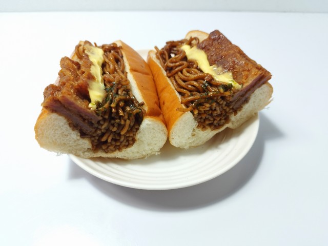ハムカツ&焼きそばの具!パンを美味しくいただきますっ!!