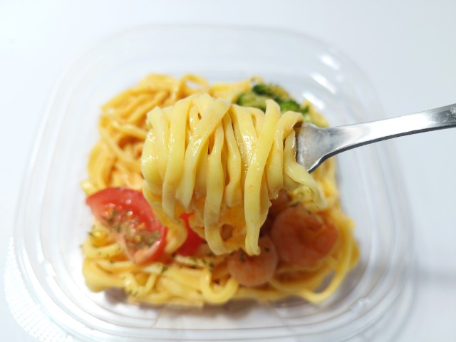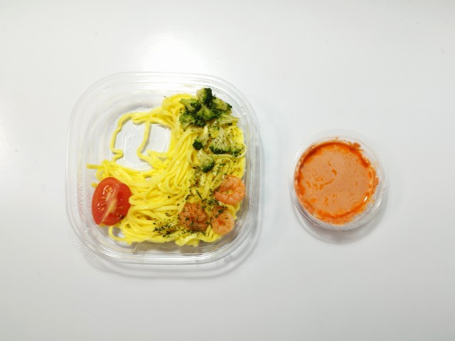 ファミリーマートの今週の新商品「冷たい生パスタ 海老とトマトクリーム」を食べてみました。