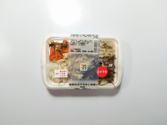 セブンイレブンの商品「塩麹仕立てのあじ御飯」を食べてみました。
