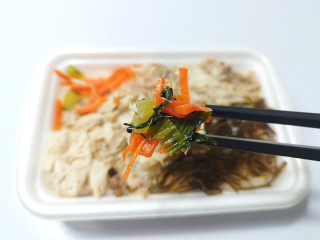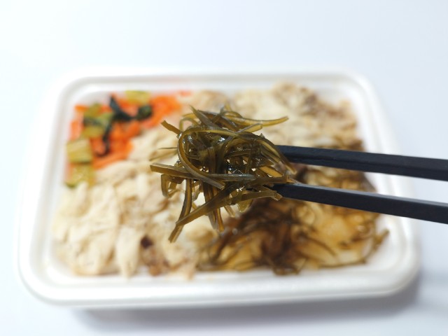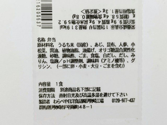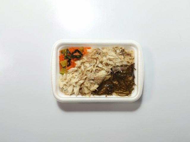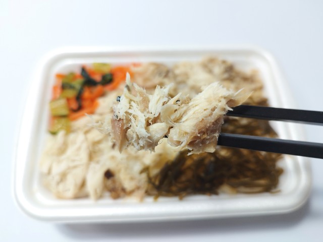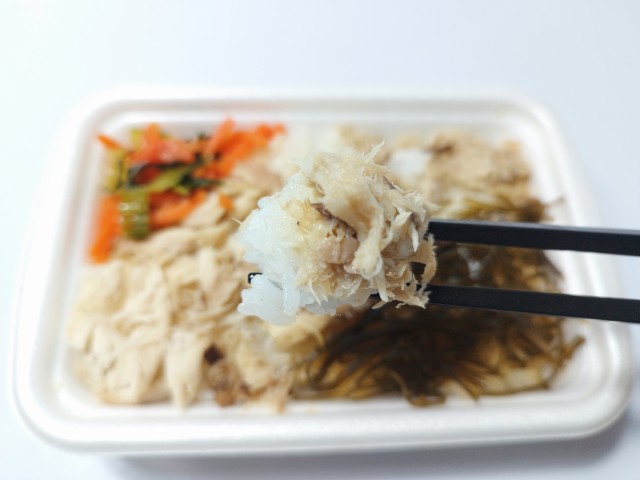 あじを使ったお弁当です。以前の購入が2025年10月14日発売だったので、約5ヶ月近く経っていますが、価格が398円(税込429.84円)から420円(税込453.60円)へと変わっています。そんな塩麹仕立てのあじ御飯ですが、あじのほぐし身はしっとりとした食感と鯵の旨味、ほのかな塩味があって、ご飯が進む一品になっています。あじのほぐし身以外にも昆布や小松菜、人参がのっていて、昆布の味わいや小松菜の食感を楽しむ事が出来ます。正直、あじのほぐし身の美味しさに特化した商品といった感じで、それ以外はそこまで魅力はありませんが、鯵を堪能するにはオススメのお弁当だと思います。ミニ弁当なので内容量は多くありませんが、小腹が空いた時や軽く済ませたい時などにピッタリです。ぜひ塩麹仕立てのあじ御飯を食べてみてください。
