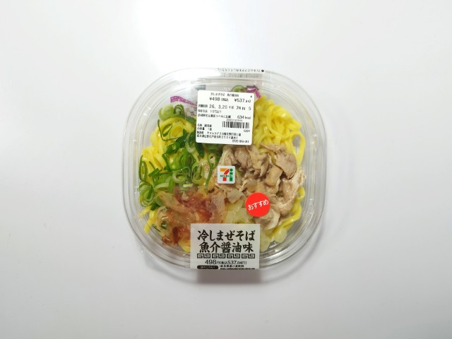 セブンイレブンの今週の新商品「冷しまぜそば 魚介醤油味」を食べてみました。