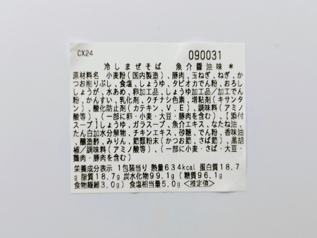 熱量:634kcal、たんぱく質:18.7g、脂質:18.7g、炭水化物:99.1g(糖質:96.1g、食物繊維:3.0g)、食塩相当量:5g