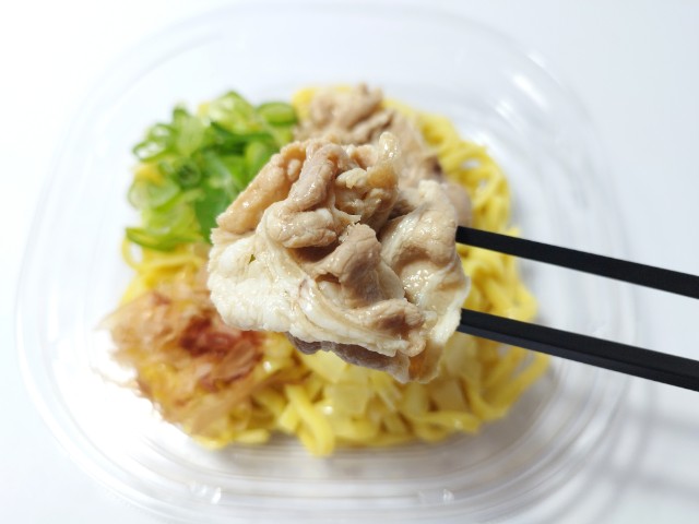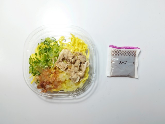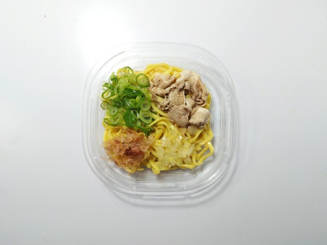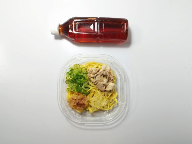 魚介醤油味の冷しまぜそばです。以前の購入が2025年4月29日発売だったので、約11ヶ月近く経っていますが、価格は変わっていません。そんな冷しまぜそばですが、スープは魚介の旨味と醤油の風味、スッキリとした味わいで、ハマってしまう美味しさです。麺はもちっとした食感とのどごしの良さで、スープとのバランスも良いです。具材には豚肉、玉ねぎ、青ねぎ、かつおぶしがのっていて、それぞれの味や食感を楽しめます。撮影では見た目もあって軽くしか混ぜていませんが、当然ながらまぜそばなので、しっかりと混ぜて食べるのがオススメです。もちろん、食べる時にはがっつり混ぜて食べています。内容量は1食分にちょうどよく、お腹も満たされます。ぜひ魚介醤油味の冷しまぜそばを食べてみてください。