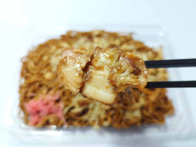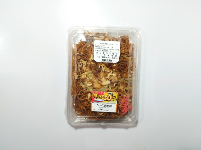 フードパックに入ったソース焼そばです。以前の購入が2025年6月2日発売だったので、約5ヶ月以上経っていますが、価格が497円(税込)から538円(税込)に変わっています。従来品の大盛ソース焼そばは、ほぼ通年販売の商品なので、以前の発売日からどこかのタイミングで値上がりしていたみたいです。価格以外にも豚肉が焼豚に変わっていたりと細かな部分での変更点もあるようです。今年6月に開催されたローソン50周年記念「盛りすぎチャレンジ」が好評だった事を受けて、11月18日から「盛りすぎチャレンジ」感謝の追加開催が実施されていて、今回の商品もその対象商品の一つになっています。ちなみに内容としては総重量が今だけ50%増量(従来品との比較)になっているらしいです。そんなソース焼そばですが、ソースの旨味とほのかな甘味があって安定の美味しさです。中華麺はもちっとした食感と歯切れの良さで、どんどんと箸が進みます。具材には焼豚を始め、キャベツやもやし、紅生姜などがのっていて、最後のひと口まで飽きることなく食べられます。このままでも美味しいですが、味変として青のりやマヨネーズを加えるとさらに美味しいと思います。内容量は従来品でも多い大盛ソース焼そば(2025年5月13日発売)の50%増量となっているので、ガッツリ食べる方でもかなり満腹になると思います。ぜひ盛りすぎ!ソース焼そばを食べてみて下さい。