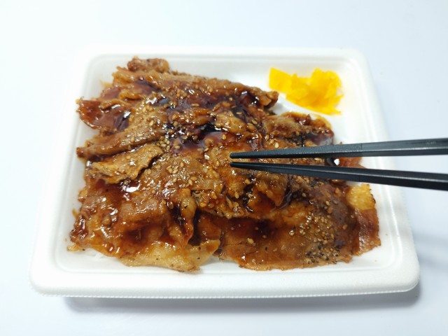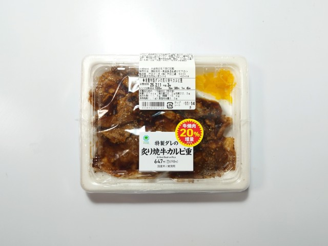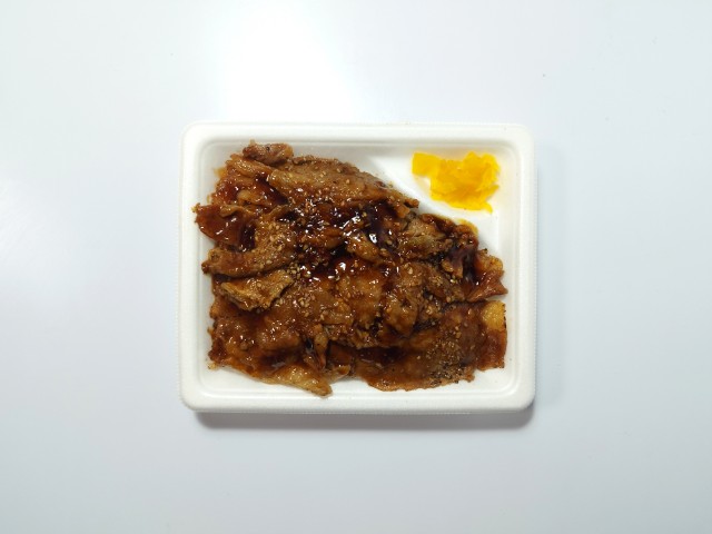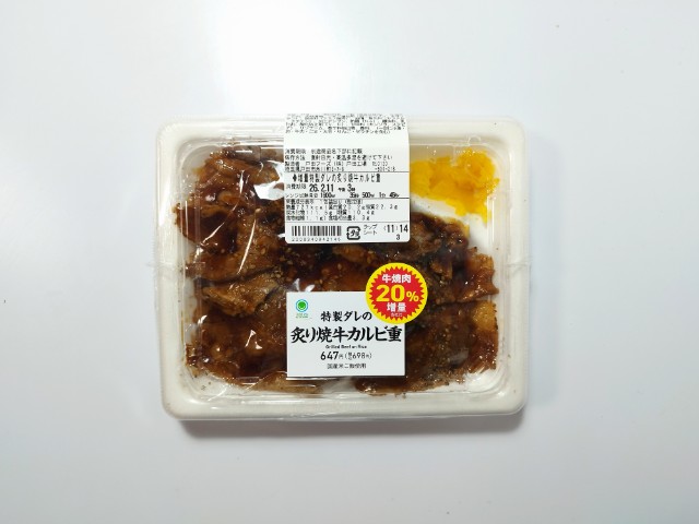 ファミリーマートの今週の新商品「増量特製ダレの炙り焼牛カルビ重」を食べてみました。