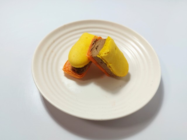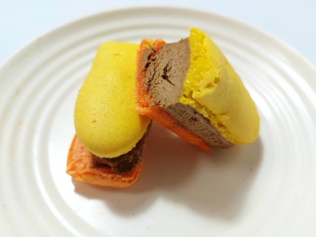 ファミリーマートの商品「【「ピエール・エルメ アンソロジー」監修】マカロンサンド(チョコレート&パッションパイン)」を食べてみました。