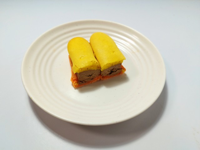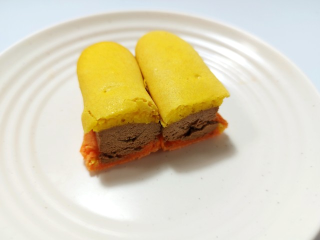ピエール・エルメ アンソロジー監修マカロンサンドです。以前に【「ピエール・エルメ アンソロジー」監修】マカロン サンド(イチゴ&パッションフルーツ)(2025年1月28日発売)がありましたが、今回はそれに続く第二弾になっています。ちなみにピエール・エルメ アンソロジーとは古き良き時代のパティスリーの世界観をパティシエ ピエール・エルメが現代的に再解釈したコレクションだそうです。そんなマカロンサンドですが、横に長いマカロン外はサクッと食感中はねっとり食感を楽しむ事が出来ます。サンドされているチョコレートクリームチョコの甘味なめらか食感パッションフルーツ&パイナップルソースパッションフルーツの酸味とろりとした食感で、味と食感のバランスが良いです。大きさはふた口サイズくらいで、お茶請け軽く甘味が欲しい時にピッタリです。ぜひマカロンサンドを食べてみて下さい。