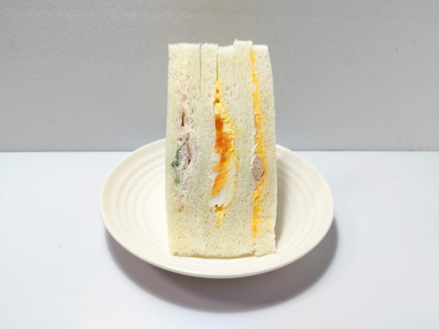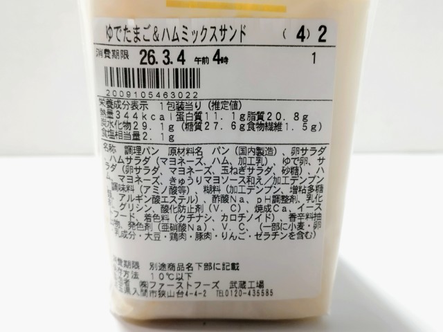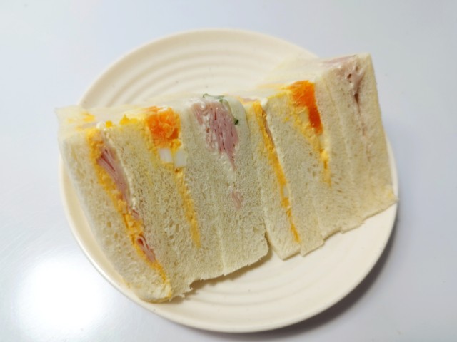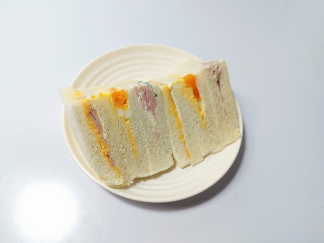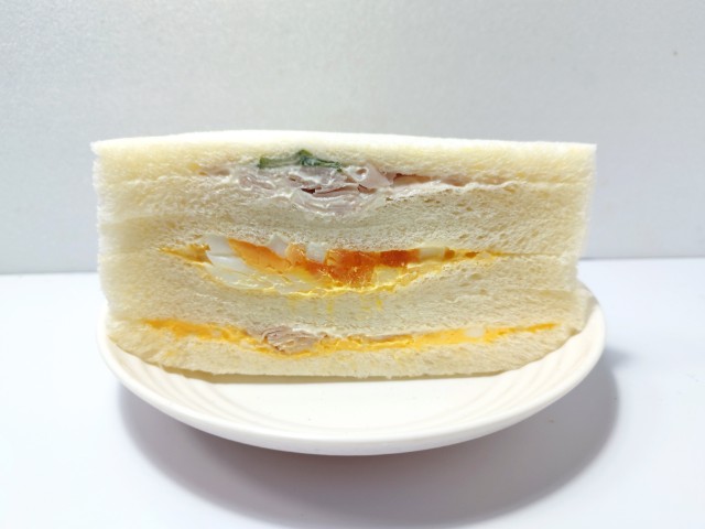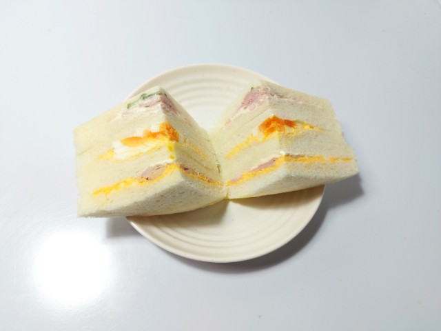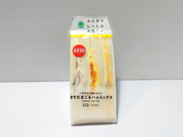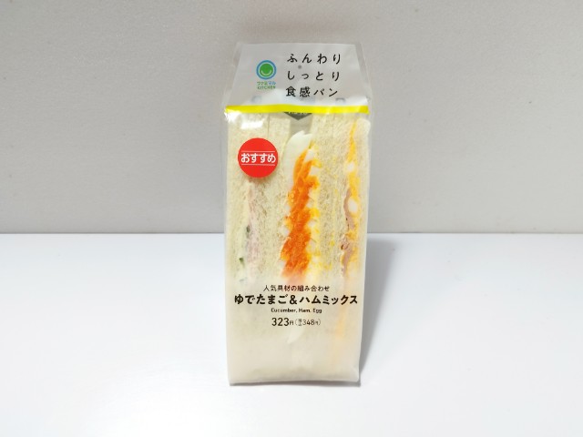 ファミリーマートの商品「ゆでたまご&ハムミックスサンド」を食べてみました。