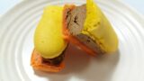 ピエール・エルメ アンソロジー監修のサブレサンドです。以前に【「ピエール・エルメ アンソロジー」監修】マカロン サンド(イチゴ&パッションフルーツ)(2025年1月28日発売)、【「「ピエール・エルメ アンソロジー」監修】ザ・ガトー クリーム(コーヒー&チョコレート)(2025年1月28日発売)がありましたが、今回はそれに続く第二弾になっています。ちなみにピエール・エルメ アンソロジーとは古き良き時代のパティスリーの世界観をパティシエ ピエール・エルメが現代的に再解釈したコレクションだそうです。そんなサブレサンドですが、サブレ生地はサクッとした食感とバターの風味があって、安定の美味しさです。間にはバニラクリームとスポンジ生地、いちごクリームが挟まっていて、バニラクリームはふんわりとした食感とバニラの風味、スポンジ生地はしっとり食感とほのかな甘味、いちごクリームはなめらかな食感といちごの甘味、いちごクリームの間にあるいちごソースはとろりとした食感といちご果肉の味わいと色々な味を楽しめて、最後のひと口まで飽きることなく食べられます。大きさは手のひらサイズよりやや小さいくらいで、おやつや食後のデザートにオススメです。ぜひサブレサンドを食べてみて下さい。