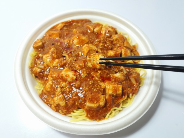 ファミリーマートの今週の新商品「【関東】隠し味にラー油をかけて 四川風麻婆焼そば」を食べてみました。