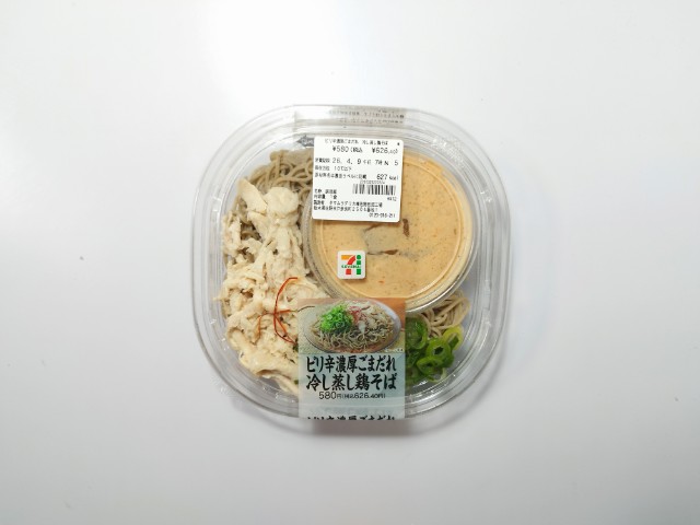 セブンイレブンの今週の新商品「ピリ辛濃厚ごまだれ 冷し蒸し鶏そば」を食べてみました。