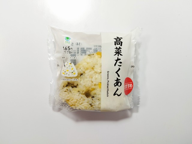 ファミリーマートの商品「高菜たくあんおむすび」を食べてみました。