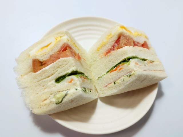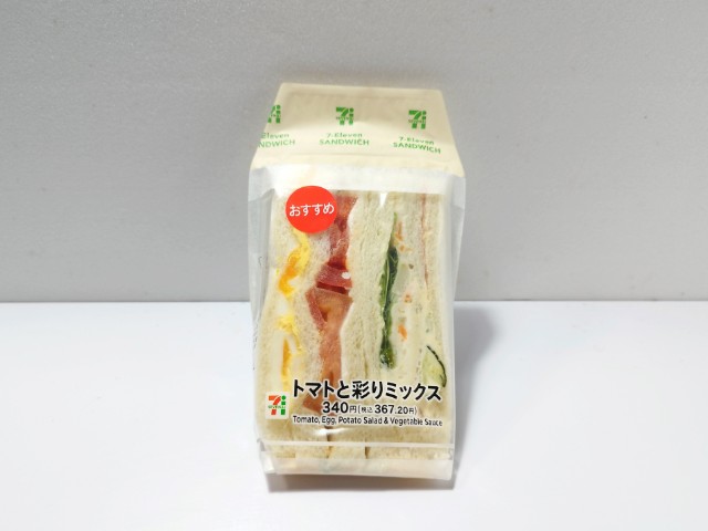 セブンイレブンの商品「トマトと彩りミックスサンド」を食べてみました。