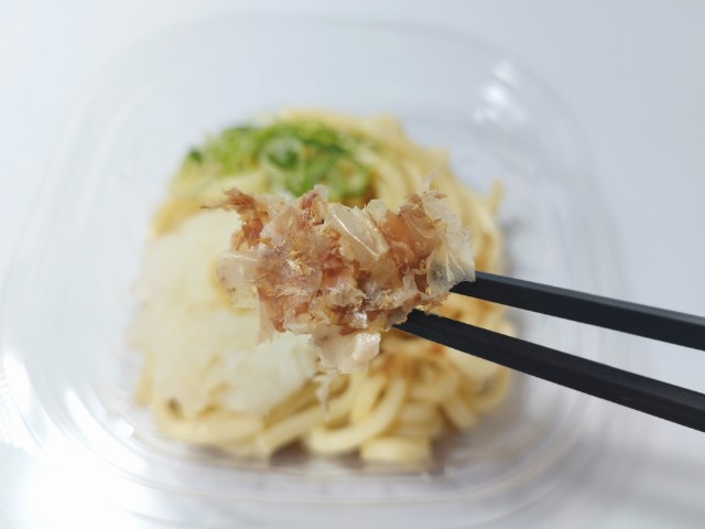 粗おろし大根がのった冷しぶっかけうどんです。以前の購入が2025年7月22日発売だったので、約7ヶ月以上経っていますが、価格は変わっていません。そんな冷しぶっかけおろしうどんですが、つゆだしの旨味ほどよい塩味で、安定の美味しさです。うどんもちっとした食感小麦の風味で、つゆのバランスが良いです。具材には粗おろし大根ねぎしょうがかつお節がのっていて、色々な味わいを楽しみつつもさっぱりと食べられる食材の組み合わせになっています。内容量は1食分にちょうどよく、お腹も満たされます。ぜひ冷しぶっかけおろしうどんを食べてみてください。
